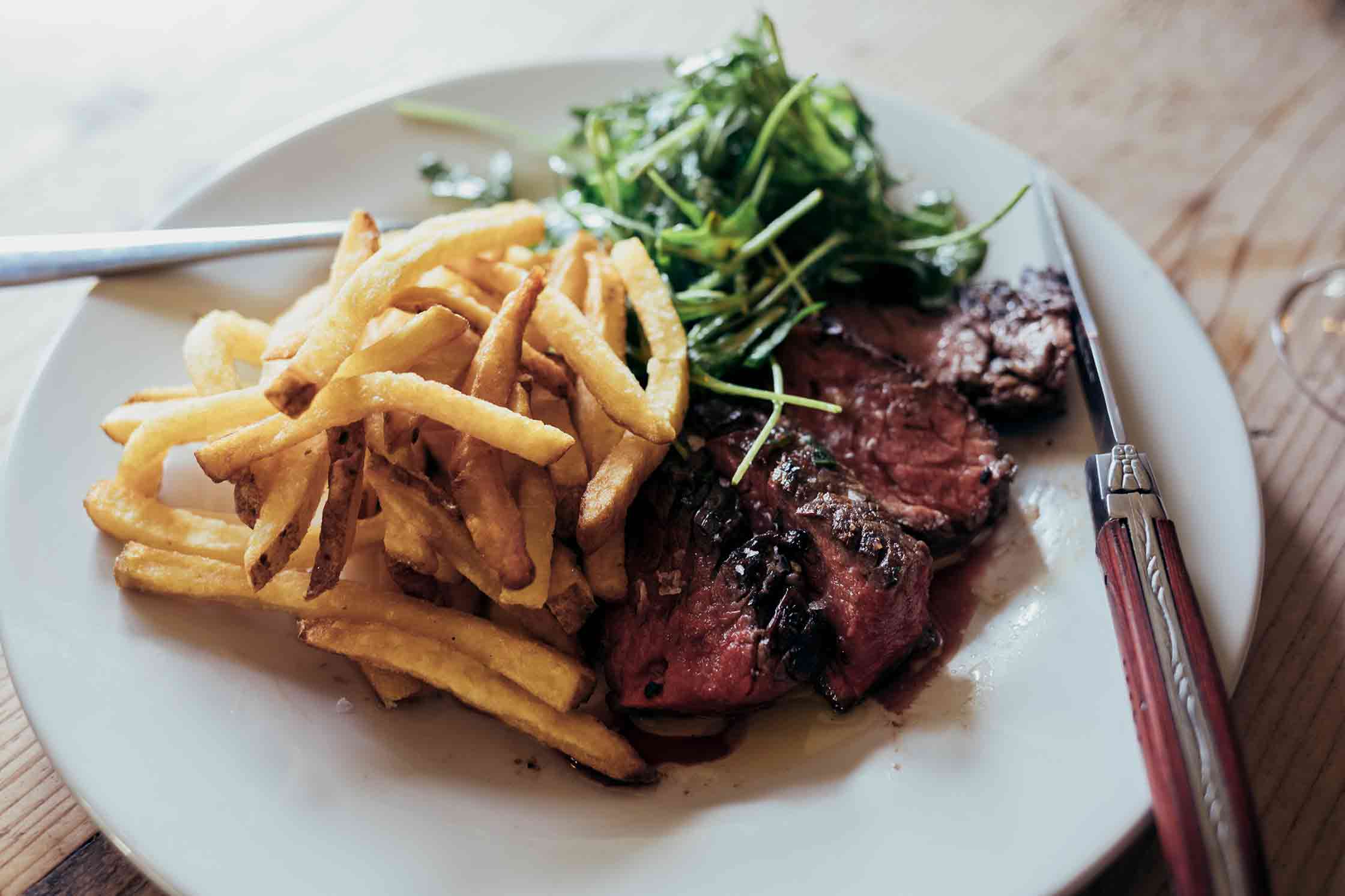 "Its combination of rustic, wood-fired comfort food, stone-flagged dining rooms, and affable service, makes it a congenial space to unwind"